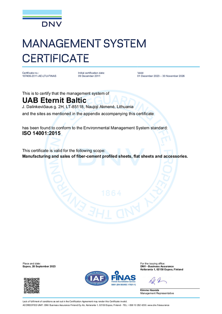 ISO 14001:2015 certificate Sertifikaat ISO 14001:2015 certificate Corrugated sheets manufacturing certificate